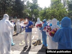 Тошкентда 26 апрель куни Вирусология илмий текшириш институти клиникасининг 108 нафар, Тошкент тиббиёт академияси кўп тармоқлик клиникасининг 44 нафар - жами 152 нафар тиббиёт ходими 14 кунлик иш сменасини якунлади.