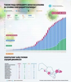 Соғлиқни сақлаш вазирлиги мамлакатда коронавирусга чалинганлар сони бўйича 27 апрель ҳолатига кўра бўлган инфографикани ҳам эълон қилди.