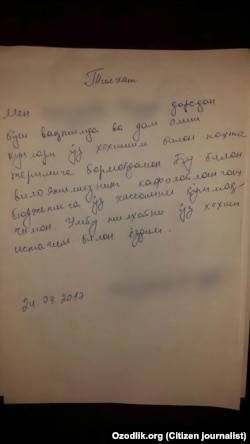 Бугундан бошлаб, шаҳардаги 30-сонли мактаб ўқитувчилари оммавий пахтага олиб чиқилмоқда. Улардан тилхат олинмоқда. "Ўз хоҳишим билан пахтага чиқдим, мени ҳеч ким мажбурлагани йўқ" деган кўринишда. Ушбу тилхатни пахта даласида туриб, ҳар бир ўқитувчидан олишмоқда".
